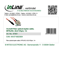 Uživatelské manuály a uživatelské příručky pro Kabely z optických vláken InLine 87261.