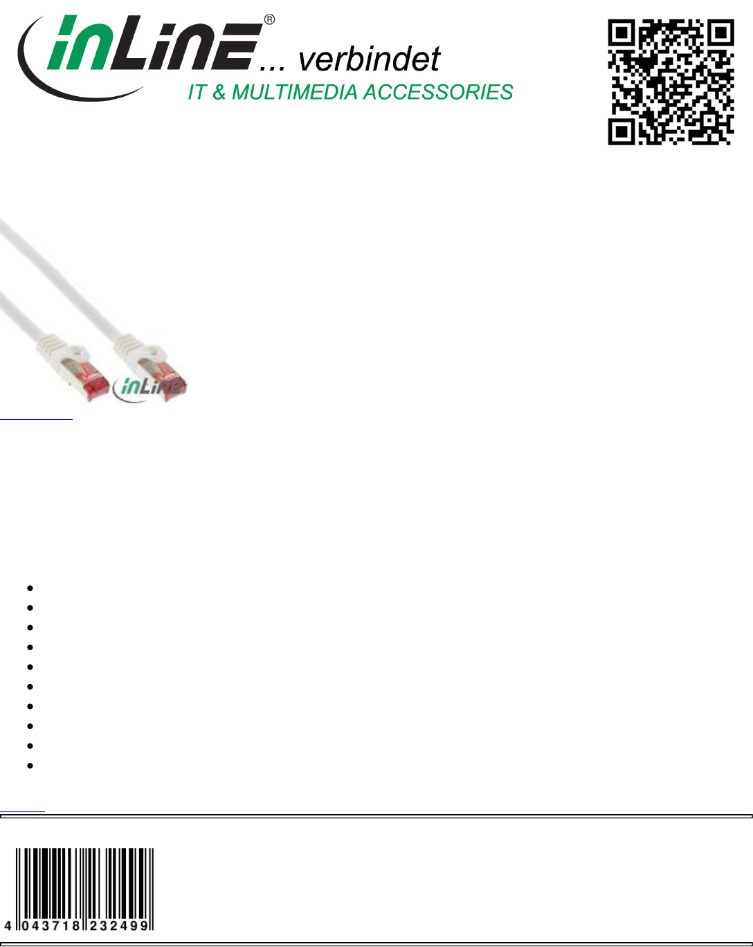 Category: Cable, Patch Cable Cat.6, Cat.6 S/FTP (Pimf)