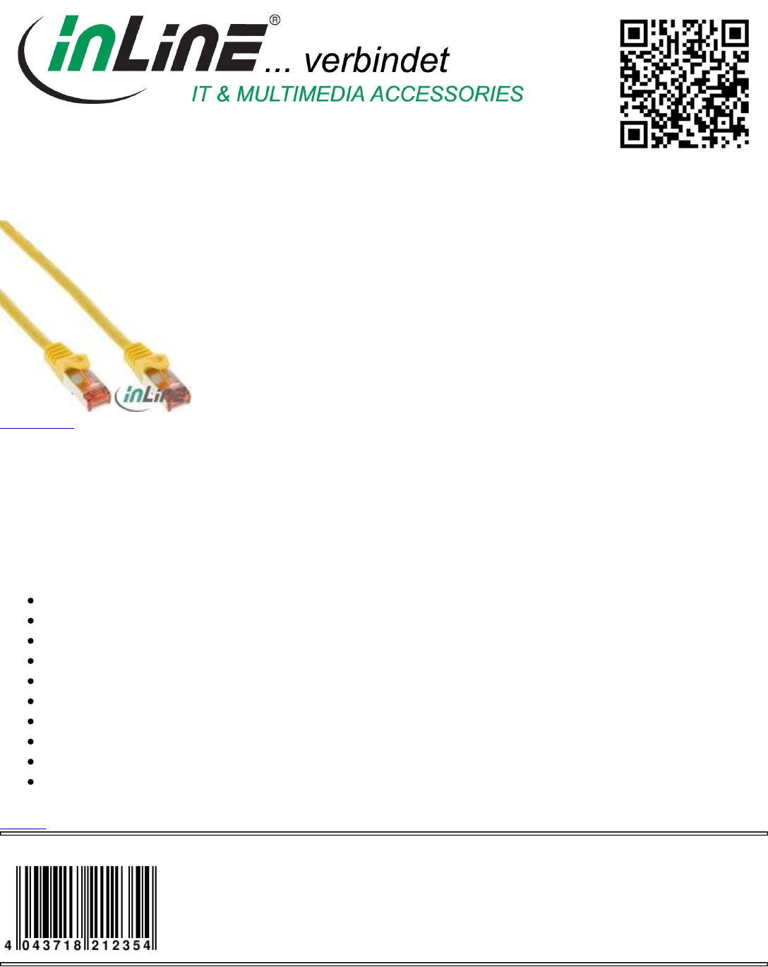InLine® Patch cable S/FTP (PiMf), Cat.6, 250MHz, halogen free,